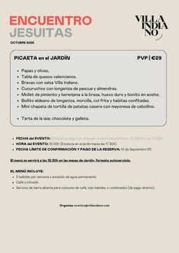 - Posibilidad de estar en el jardín hasta las 17.00h (cierre de barra de bebidas a las 16.30h)